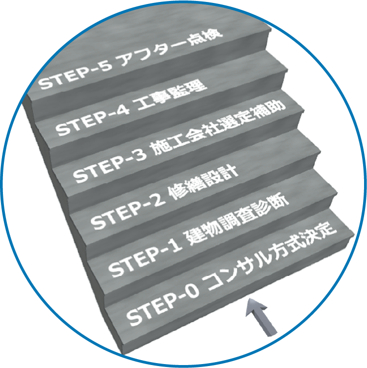 大規模修繕工事コンサルタント事業は、各ステップ間の連携が重要であるため、ひとつのコンサルタント会社が建物調査診断からアフター点検まで一貫した流れで実施することが理想的です。そのコンサルタント会社が、各ステップの内容を精査し、間違いのないものであるかを確認することで、安心して次のステップへと一歩を踏み出すことが可能です。